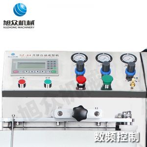 旭眾牌SZ-64型月餅自動成型機是一款多功能的設備,其具備的功能有:月餅計數、數字清零、月餅位置定位、月餅花紋深度調節、外模對內模提前動作時間調節以及成型時輸送帶延時時間調節。
